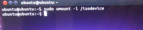 刷完后就进入一个小系统,别以为这就装好了,此时最重要的一步,通过快捷键ctrl+alt+T打开终端,输入:sudo umount -l /isodevice