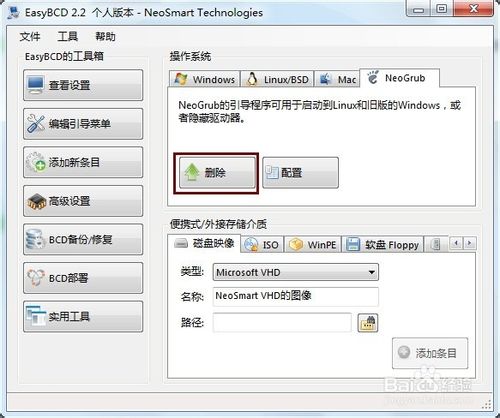 安装完后,不要忘了回到win7系统打开easyBCD软件把“NeoGrub”引导项删除,否则每次进入win7都得选一次。如果觉得以后不想重装Ubuntu了,就可以把C盘的相关文件都删掉,节省空间嘛。