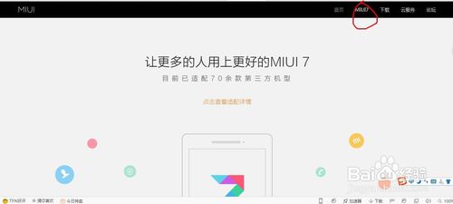 到小米官网下载刷机包。进入后点击左上角的MIUI,如图