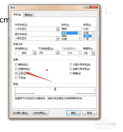 在弹出的右键菜单中选择 字体,在弹出的窗口中选择 上标。