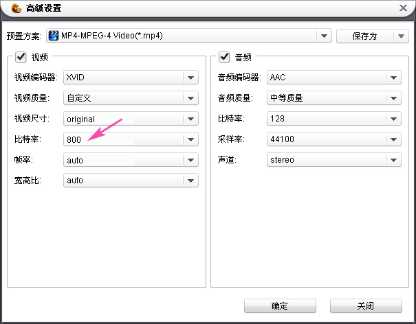 如果您感觉还是大了,还可以再回到高级设置把比特率调小,我们现在试着调为800