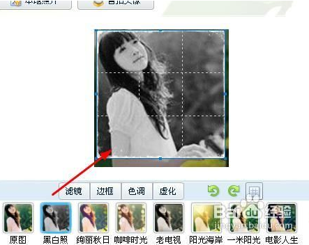 鼠标选择"黑白照""绚丽秋日""咖啡时光"等自己喜欢的滤镜效果