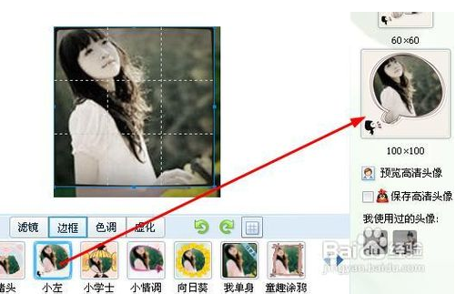 选择边框"小左",这里注意非会员的话效果只出现在右边,边框效果不会直接作为头像上传,只有滤镜效果可以直接点击"确定"后上传