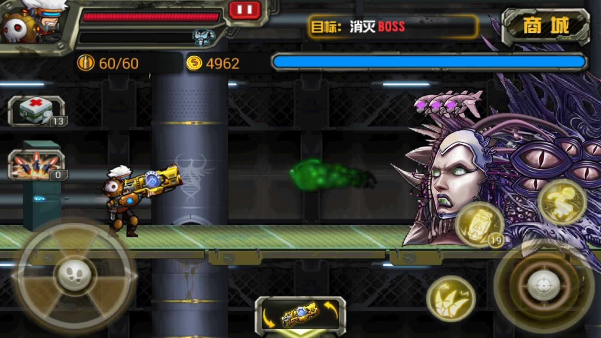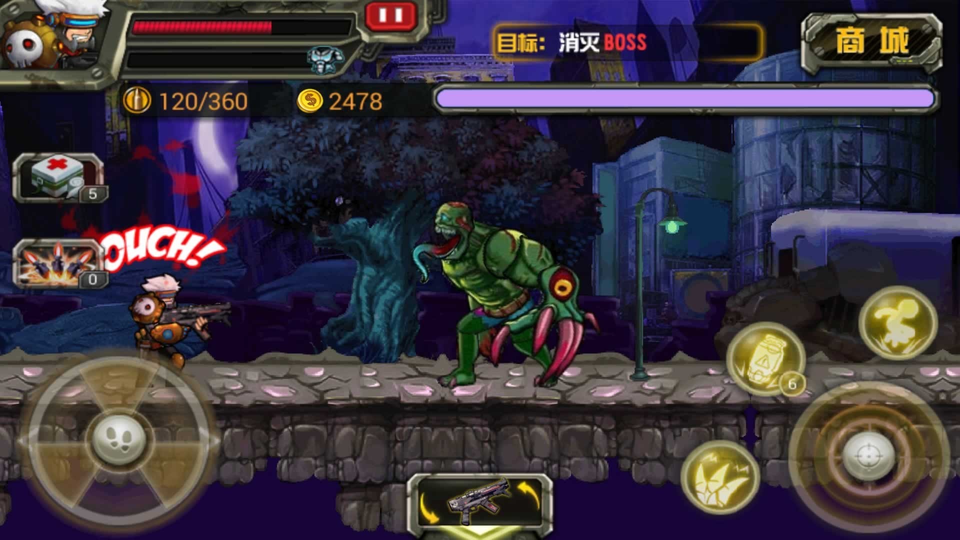 一个会吐痰的大脸,还有触手和各种小弟,召唤型BOSS,自己不会移动。小怪一定要速度杀掉,不然之后连招会很容易被打到。 BOSS技能——吐痰 BOSS吐出一口缓慢飞行的痰,被碰到会受伤,落地后召唤出胖子怪。痰的速度很慢,不难躲,但是召唤出来的小怪一定要最快杀掉,不然小怪会越来越多。 BOSS技能——召唤飞机 连续召唤几个自爆飞机冲向玩家。自爆飞机的血不多但是伤害很高,如果武器强力可以在飞过来之前迅速杀掉,杀不掉的话必须保持移动躲开自爆。 BOSS技能——召唤触手 连续召唤出几波触手地下刺出。触手影响范围大,但是一定有一个位置可以躲避,在触手出现时立刻找到空隙,及时躲避。
