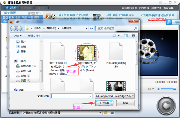 按操作指示选择了第一个视频后,现在来选择第二个要合并的视频,后续添加照样操作。(如图)