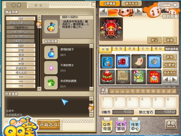 进入商店后,选择合成就可以开始合成了。如果你已有了相关的合成材料及合成书,点击“合成按钮”便可以直接合成物品。