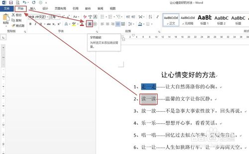 说明:我们还可以选择文本设置字符底纹,在“开始”选项卡,直接单击“底纹”按钮即可。