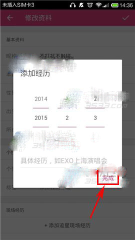 2)点击右上角的【一支笔】图标,在修改资料的最底部有个【添加追星现场经历】的按钮,点击它。(如图)