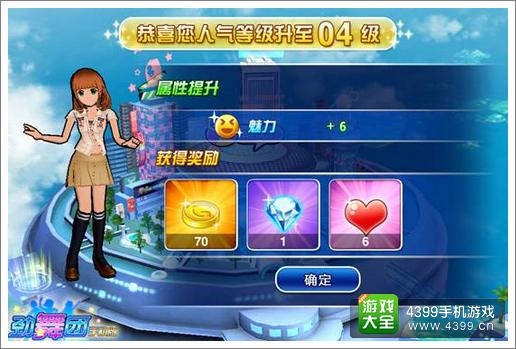 完成这部分的【新手任务】之后也会有奖励。可以看到,在升级画面中,玩家的人物服装也随之改变,更具魅力与吸引力啦!