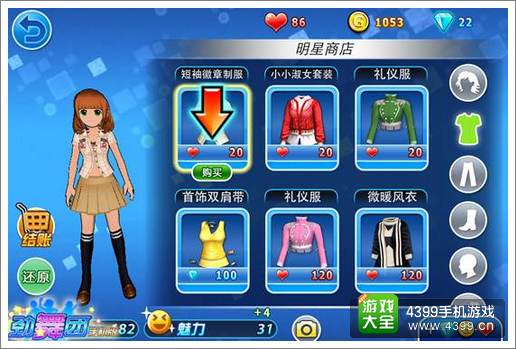在首次跳完舞曲之后,我们的助理小秘书会提醒各位通过服饰装扮来美化自己的游戏形象。跟着箭头进去,就来到了我们的【服装商城】啦。