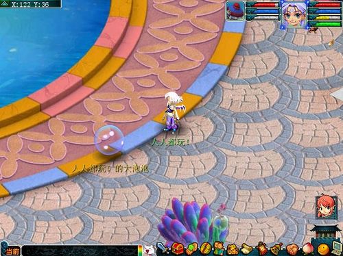 右键使用泡泡水,消耗15点体力,屏幕中心会出现一个圆形按钮,用鼠标快速点击这个按钮,就可以吹出多彩的泡泡,并获得奖励。在圆形按钮出现的时间内,鼠标点击的次数越多,吹出的泡泡就会越大,奖励也会越多。