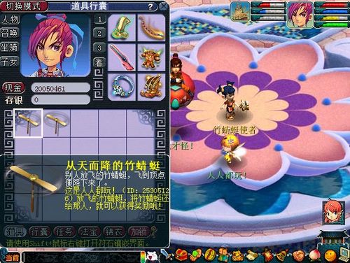 儿童节活动期间每日12:00-13:00、20:00-21:00,等级≥30级的玩家,可以前往西梁女国(84,61)找竹蜻蜓使者领取竹蜻蜓。