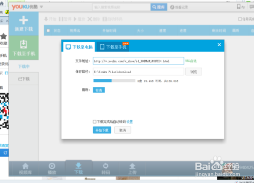 点击下方“转码”,点击“新建转码”,选择“源文件”,选择刚下载的文件,选择转码格式“FLV”,点击“开始转码”,完成后在你转码文件放置的文件夹中找到此文件,即可传至U盘