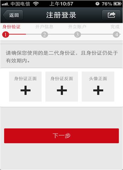设置完密码,点下一步,进入三方存管。选择一个本人开户的银行,输入卡号和密码。有些银行不用输密码,则直接输入完卡号点“下一步”即可。