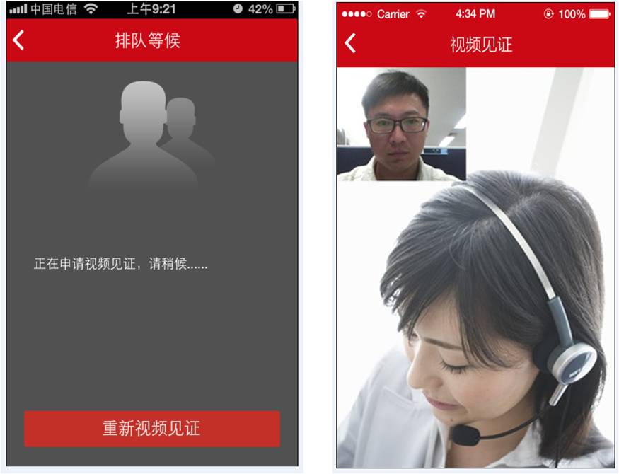 进入视频见证环节,用户通过手机摄像头与客户人员进行视频见证。