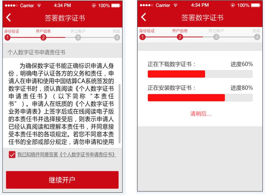 进入协议签署界面,用户可以点击每个协议仔细阅读,确认后点“下一步”,进入风险测评。