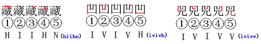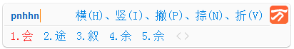 如:“忄”的笔画顺序为(丶丶丨),编码为(nnio)