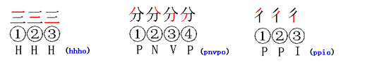 二、不足5个笔画的汉字+“O”键输入结束。