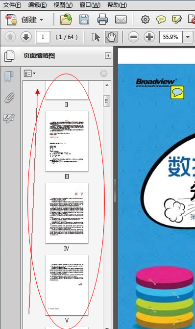 1、软件Adobe Acrobat X Pro,打开之后点击页面缩略图,页码是阿拉伯数字,但有时候规范起见,我们将前面的几页设置为罗马数字等以便区分。