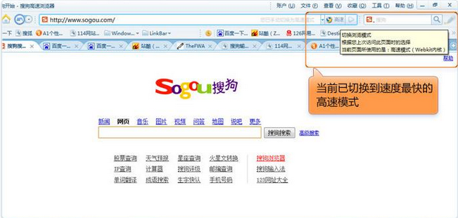 搜狗内置了全球最快的webkit引擎,在高速模式下的浏览速度可以提高2倍以上。