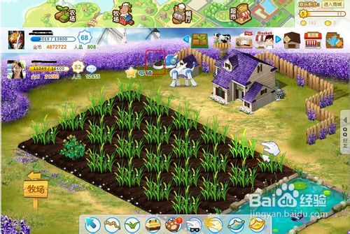6、好了,普通的玩法就这样了,下面给大家讲讲剩下的按钮吧。在铲子左边的是升级土地的按钮,可以吧普通土地升级为红土地,红土地再升级为黑土地,很花钱哦。在左上方,有个蓝色的盒子图标,点击它,可以给好友送东西,大家可以看到,我和我的好友都是互送牧草的,这样,在牧场就不用买牧草了,农场的土地也不需要种植牧草,很划算哦。最后一个按钮是签到的,每天点一下,能抽一次东西,一般都是给种子,没什么意思。