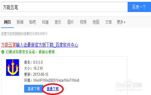 1首先是下载:打开浏览器输入万能五笔并搜索,然后在结果中选择下载。