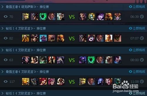 选好一个我们想要看的比赛,可以根据段位和英雄看。然后在相应比赛的右方有一个比赛开始时间和立即观战,点击立即观战即可。