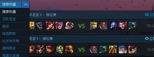 在弹出的右方观战选项中有一个选择大区的选项,一般来说点击推荐热播就可以了,上面的比赛质量一般还可以。