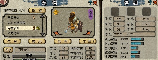 大家可以看到我的资质材料宝宝本身数值比我的再造低。但他的耐力资质是近满的。