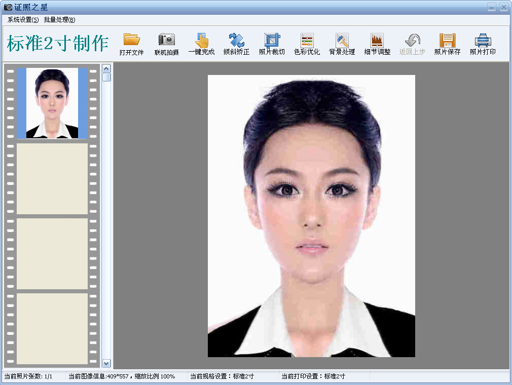 只需这样简单移动肩膀位置标识牌来调整肩膀高低,很轻松就将一张肩膀高低不一样的证件照片调整为完美端正的证件照片了。