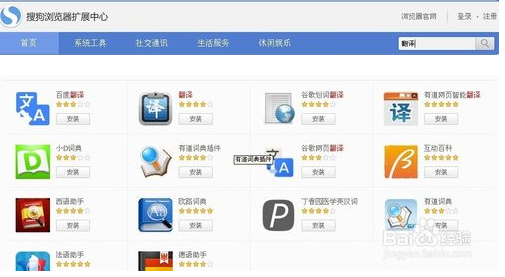 打开网站在搜索栏输入翻译,会找到一些翻译插件