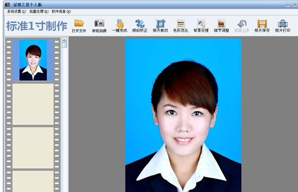 证照之星是国内顶级的证件照制作编辑软件,具有一键完成, 智能背景替换,批量制作、万能制作的四大优势,智能去除皮肤油光、证照服装替换的两大独创。证件照制作软件证照之星被广泛应用于公安系统、车辆管理所、学校、出入境管理局、外事部等相关部门。我们来了解下如何用证照之星制作一寸证件照。