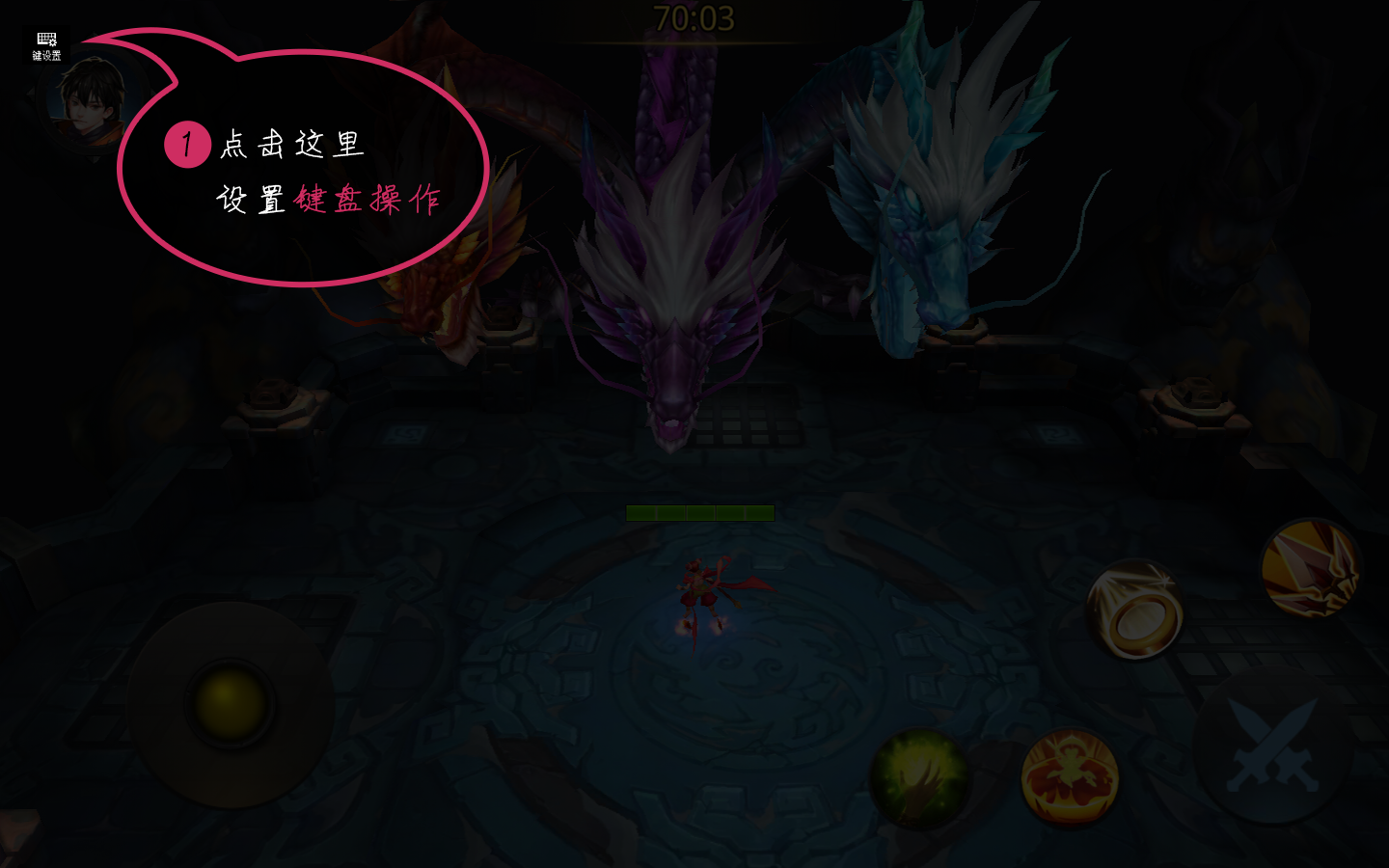 第三步,鼠标点击攻击和技能键,设置键盘上的按键,即可用对应的按键释放技能