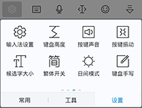 快捷设置:包括「常用」「工具」「设置」三个面板