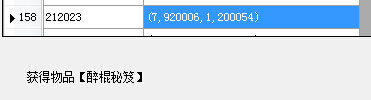 前面奖励编号可以看做是ID,后面的奖励内容你得对照好几个文档来看。不过咱们有工具那可就方便多了,点一下事件,下面会提示你内容。例如第一个和第二个: