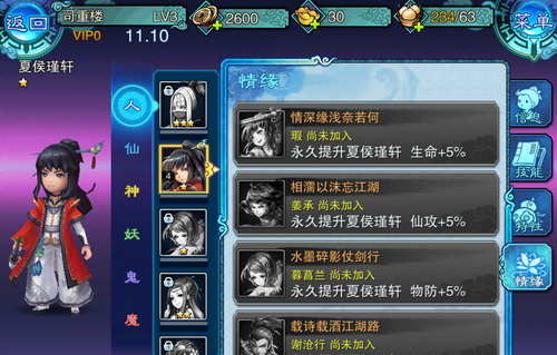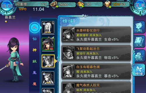 在仙剑奇侠传5前传手游中情缘是非常有意思的一个系统,通过将有情缘关系的角色组成队伍会获得额外的属性加成,合理的分配队伍成员可以有效的提升。