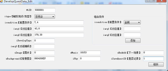 双击空行进入编辑界面,ID我填的9300001,触发地点忘忧谷: