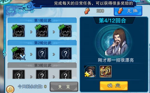 每次战胜对手,将获得丰厚的奖励,如进阶丹药、升星石、角色魂石……甚至运气足够好可以直接获得新英雄。重置品剑大会,所有角色获得初始状态,从第一轮开始重新战斗。