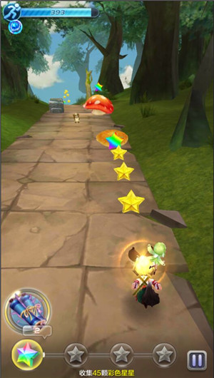 在起跑不远后会遇到三个并排的障碍物,这样障碍物就挡住了接下来的视野,在这里时玩家注意的是从中间的木牌地下钻过去,因为只有中间的木牌后面才有彩星。虽然并不多只有一颗,但是积少成多也不容小觑哦。同样的,在第二个独木桥时最右侧道路上会有一个彩星被遮挡住了视线,玩家们可以提前变道来到最右侧,虽然中间道路有许多黄星,但是完成任务才是第一目标哦。