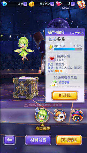 如果没有焰火之灵与大地之灵这两样高级宠的话推荐使用绿野仙踪。因为收集的物品为动物头,而目前并没有宠物能对动物头的数量有加成,所以能够提升生存能力的能量宠对于这一关来说是一个不错的选择。