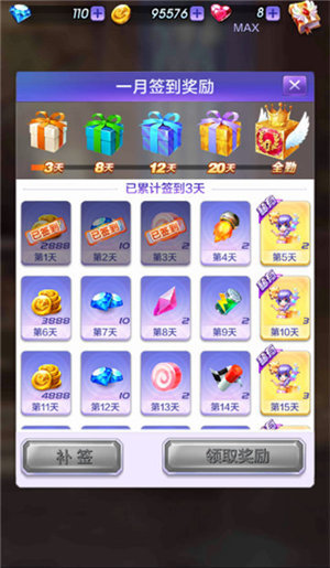 前面说的新手好礼活动是一次性活动,什么意思呢,就是说它的奖励只能领取一次。而签到奖励是周期性的,它贯穿我们的游戏生涯,每个月都会重新刷新奖励,可以无限次数领取~