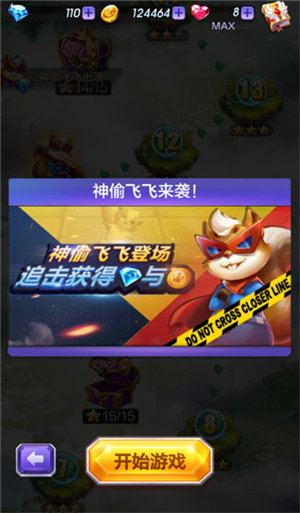 2)剧情模式每天都会刷新一个穿着超人服的小松鼠,他就是神偷飞飞。神偷飞飞追击战可以获得少量钻石和金币。抓捕成功可以获取9颗钻石,失败的话就更少了。神偷飞飞的刷新时间是24小时,每天都可以进行追捕,所以也算是可以积少成多。