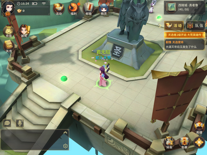每逢30分或整点,天珠会降落至大荒各处。一些天珠元魂突破,化为人形混入人群,或变为妖星祸害大荒。每位天选者开天珠的次数不限,而妖星每天可击杀5次。妖星分为多个级别,队长必须带队击杀所有低级妖星才能挑战下一级别妖星。