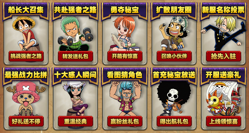 活动描述:开服7日内,每日上线皆可领取惊喜奖励,广大海迷们,不要错过哦!