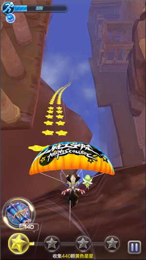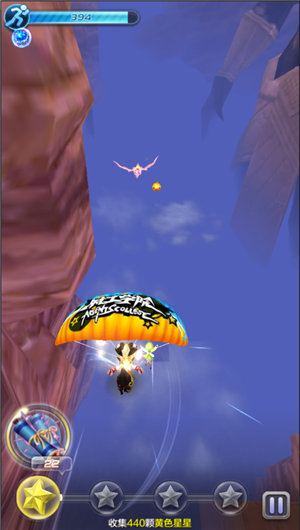 第二次的滑翔考验的是玩家们的移动能力了。这一次并不会有火焰鸟进行捣乱,注意通过磁铁吸收黄星,但是不能因为有磁铁就松懈了,在这一段路程中中间有一段时间需要玩家们手动控制收集黄星和第二个磁铁,如果一个不留神的话你就会与大量的黄星与磁铁擦肩而过了。
