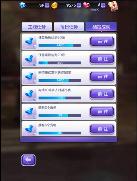 除了主线任务与每日任务有大礼相送外,还有酷跑成就的海量钻石可以领取。玩家们可以在酷跑成就中查看自己所完成的内容并领取相应的奖励,并且每个成就都奖励钻石。