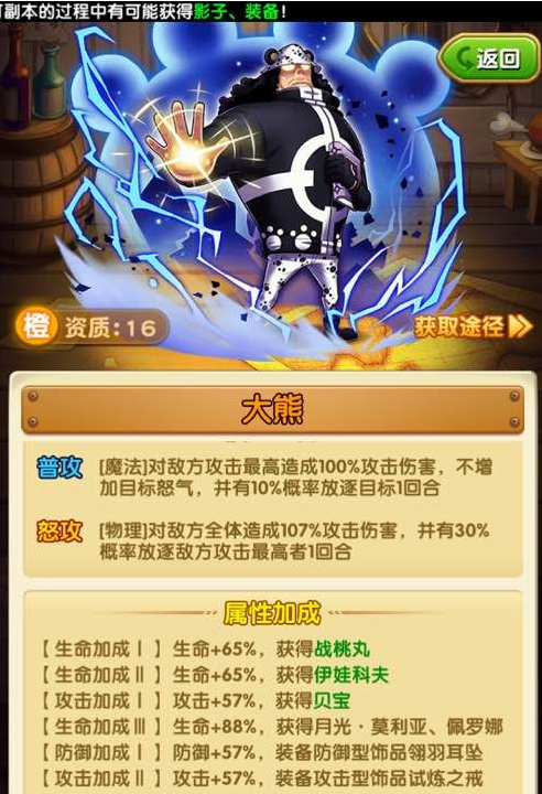 航海王强者之路大熊图鉴,大熊这张橙卡怎么样?在属性加成及潜能的配合下航海王强者之路大熊是否值得入手?一起来看看吧。