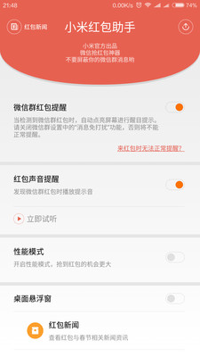 小米官方发布了抢红包助手,非常方便的可以快速抢到红包,而且功能也很多,可以抢微信红包和支付宝钱包,今天小编给大家讲解一下小米红包的使用方法。