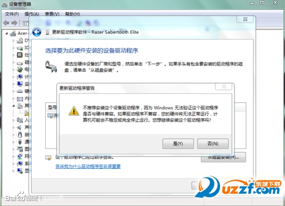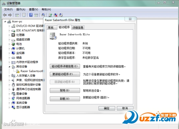 黄色叹号提示表明系统不能正常识别这一设备,我们右键Razer Sabertooth Elite这一选项,选择属性,弹出如下窗口