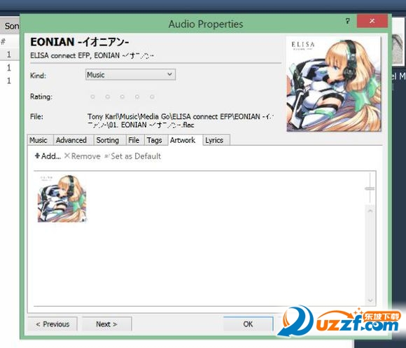 点击artwork再点击Add..(添加)可以选择图像文件成为专辑封面